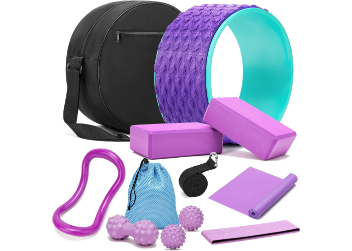 Multifunktionales Zubehör: Dieses Yoga-Rad-Set enthält 1 Yoga-Rad, 2 robuste Yoga-Blöcke, 1 Dehnungsband, 1 Yoga-Gurt, 1 Widerstandsband, 1 Erdnussball, 2 Massagebälle und 1 Yoga-Ring. Verschiedene Produktkombinationen helfen Ihnen, anspruchsvolle Yoga-Übungen zu meistern und den Körper zu entspannen. Massieren Sie tiefe Faszienschmerzpunkte mit Erdnussbällen und Massagebällen, lösen Sie verspannte Muskeln und werden Sie mit einer praktischen Netztasche und einer Yoga-Rolltasche geliefert. (YOGAMATTE NICHT INBEGRIFFEN)